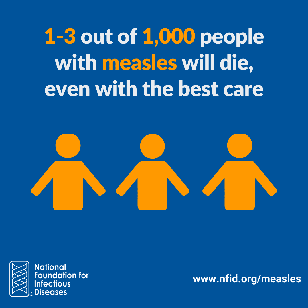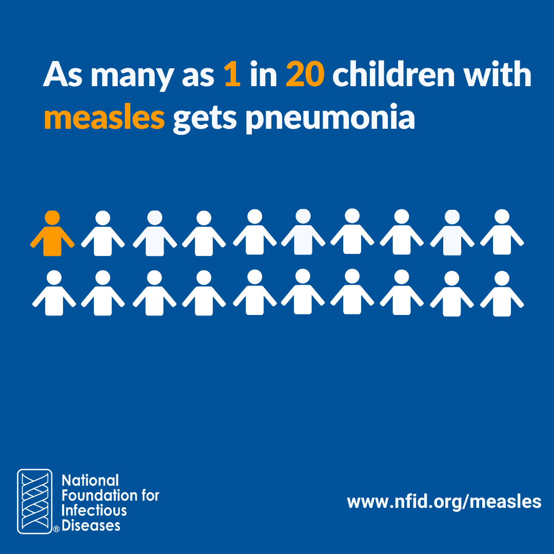 #DYK: #Measles is highly contagious and can result in severe, sometimes permanent complications including pneumonia, hospitalization, and even death? #GetVaccinated to help #PreventMeasles. Learn more at www.nfid.org/measles.