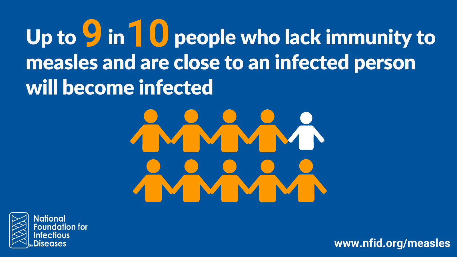 Measles is so contagious that if one person has it, up to 90% of non-immune people close to the infected person will be infected. Infected people can spread measles to others from 4 days before through 4 days after the rash appears.