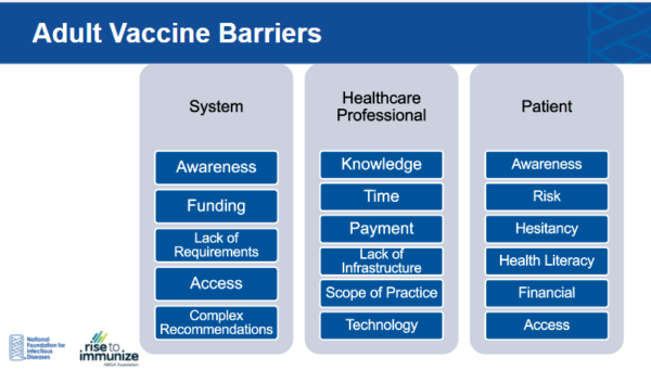 Experts from NFID and AMGA’s Rise to Immunize® (RIZE) campaign discuss the challenges and barriers for adult immunization (including access and cost), and review strategies to improve adult vaccination rates in the US.