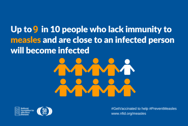 Measles is so contagious that if an individual has measles, 9 out of 10 of their close contacts who are not immune will also become infected. CDC recommends that anyone who attended the gathering and is not fully vaccinated should quarantine for 21 days after exposure and monitor for symptoms to prevent spreading measles to others.