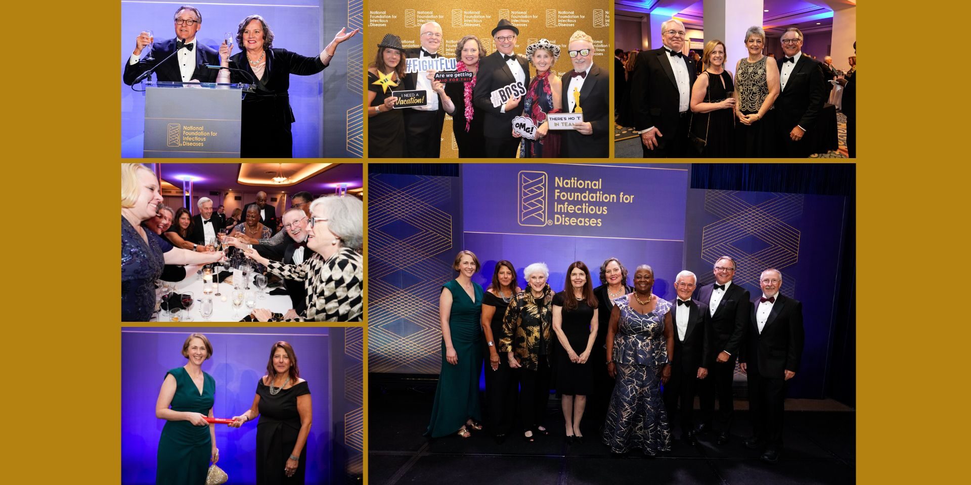 It was a night of celebration and inspiration as NFID honored 3 extraordinary public health leaders at the 2025 NFID Awards Gala and Silent Auction on October 16, 2025, in Washington, DC. Affectionately known as the Oscars of Infectious Diseases, the event paid tribute to the passion and perseverance of those working tirelessly to protect public health around the world. NFID President Jeffery A. Goad, PharmD, MPH, welcomed the audience, thanked NFID supporters, and honored the public health heroes whom we lost this year. He then acknowledged and thanked outgoing NFID CEO Marla Dalton, CAE, PE, who officially passed the baton to the new NFID CEO Rebecca Alvania, PhD, MA, MPH. NFID Immediate Past-President Patricia (Patsy) A. Stinchfield, RN, MS, CPNP, served as emcee for the Gala and presented the 2025 awards as follows: