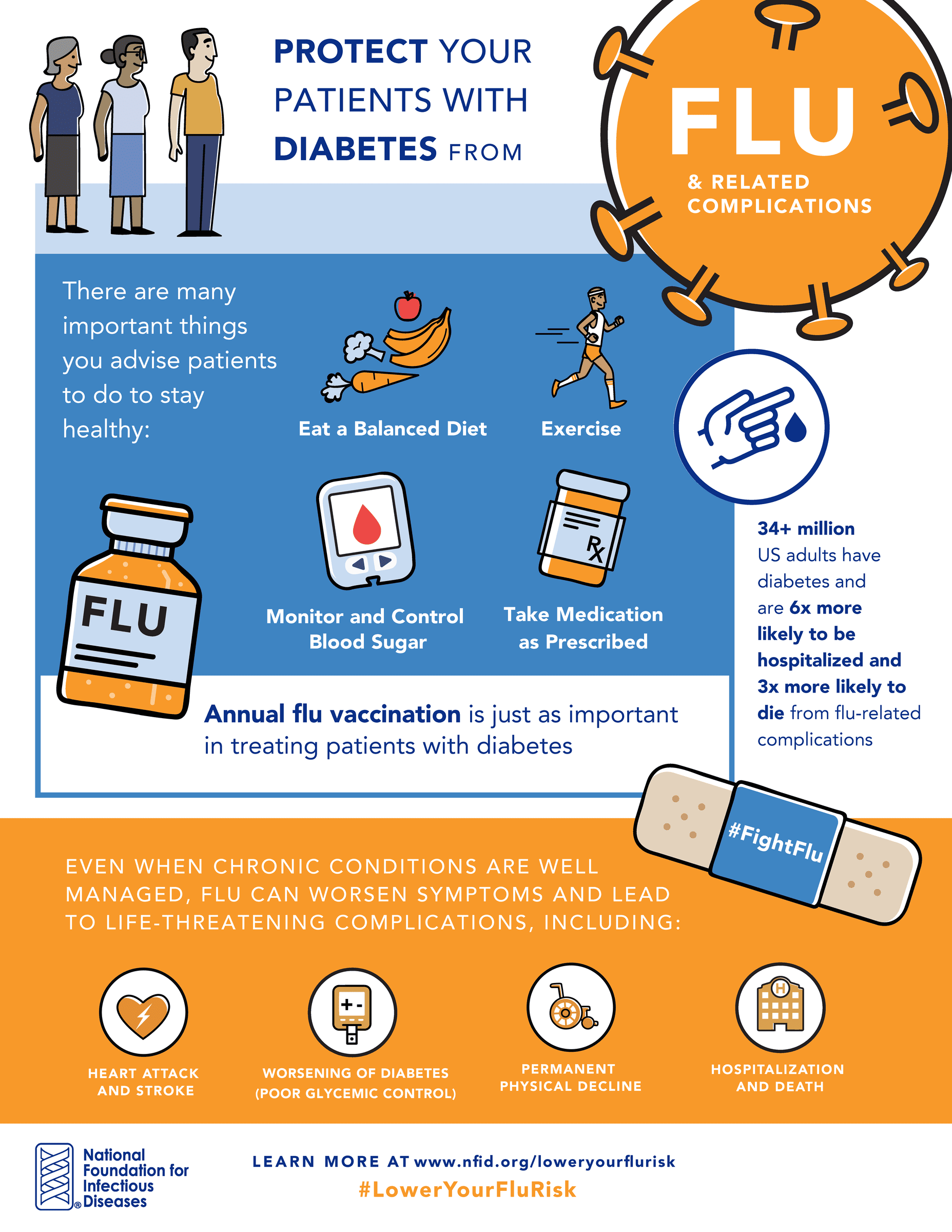 Getting influenza (flu) can be serious for anyone, but for those living with chronic health conditions including diabetes, flu can have serious consequences. Even when chronic health conditions are well-managed, flu can worsen symptoms and can lead to complications.